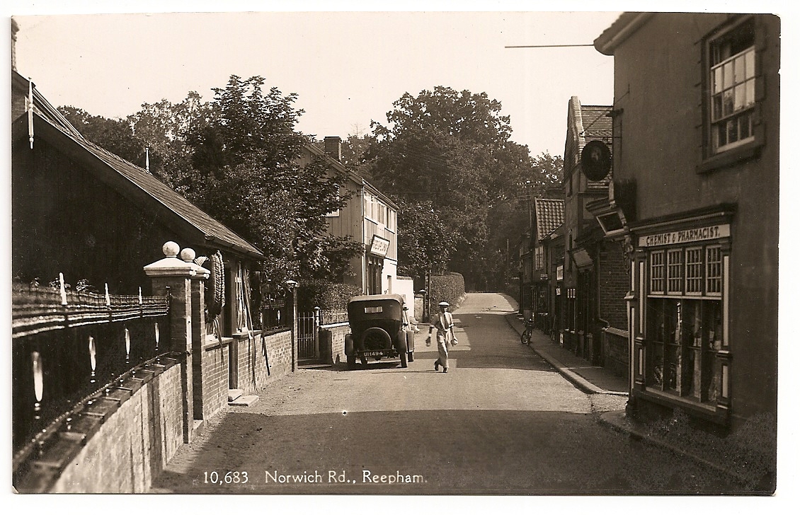 The Reepham Society Exhibition 2001 notes this as possibly a milkman, another photograph states it is Walter Reeder, baker, delivering milk.