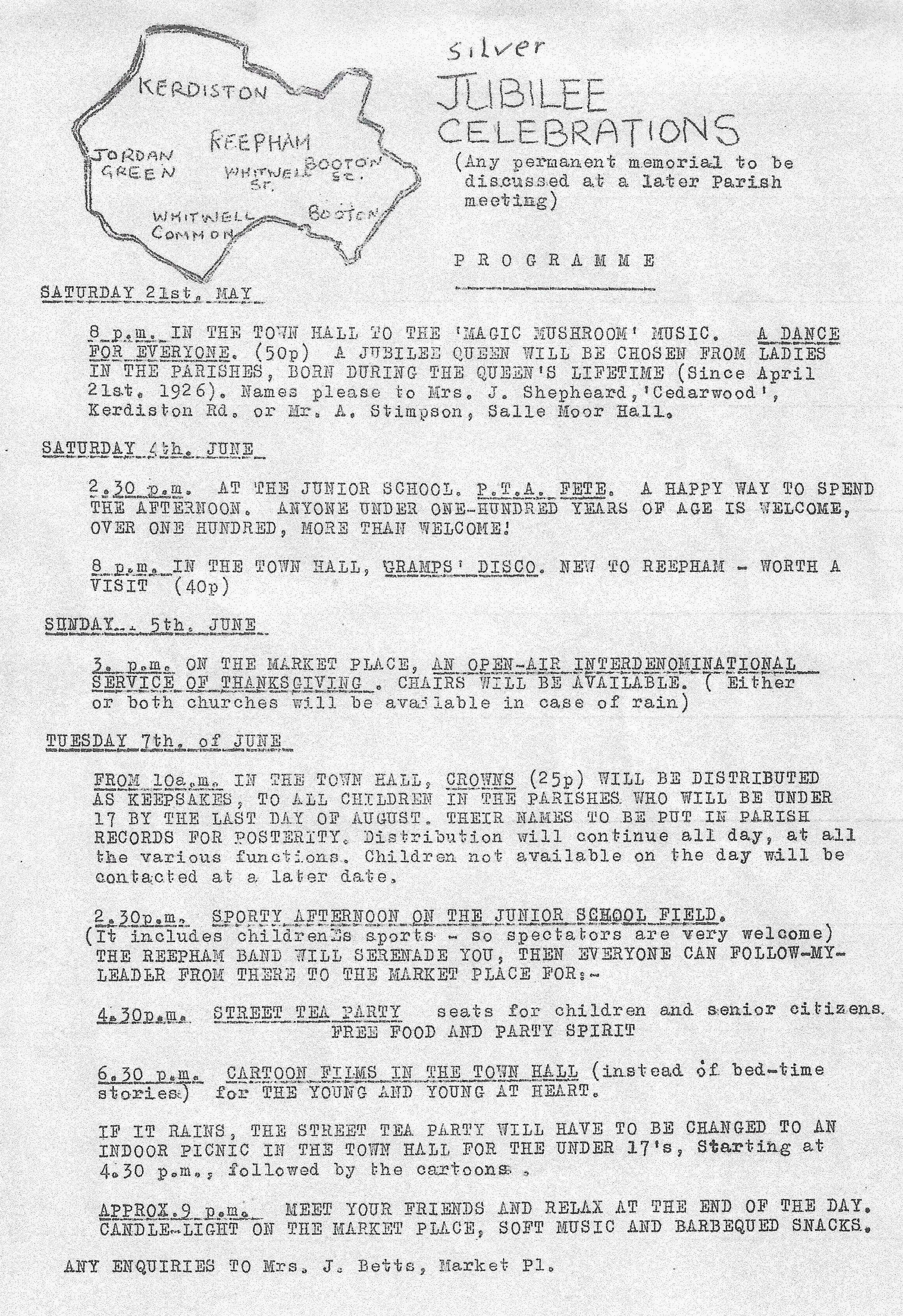 Report of the events of Jubilee Day in Reepham recorded in The (Norfolk) Journal, Friday, 17 June 1977.