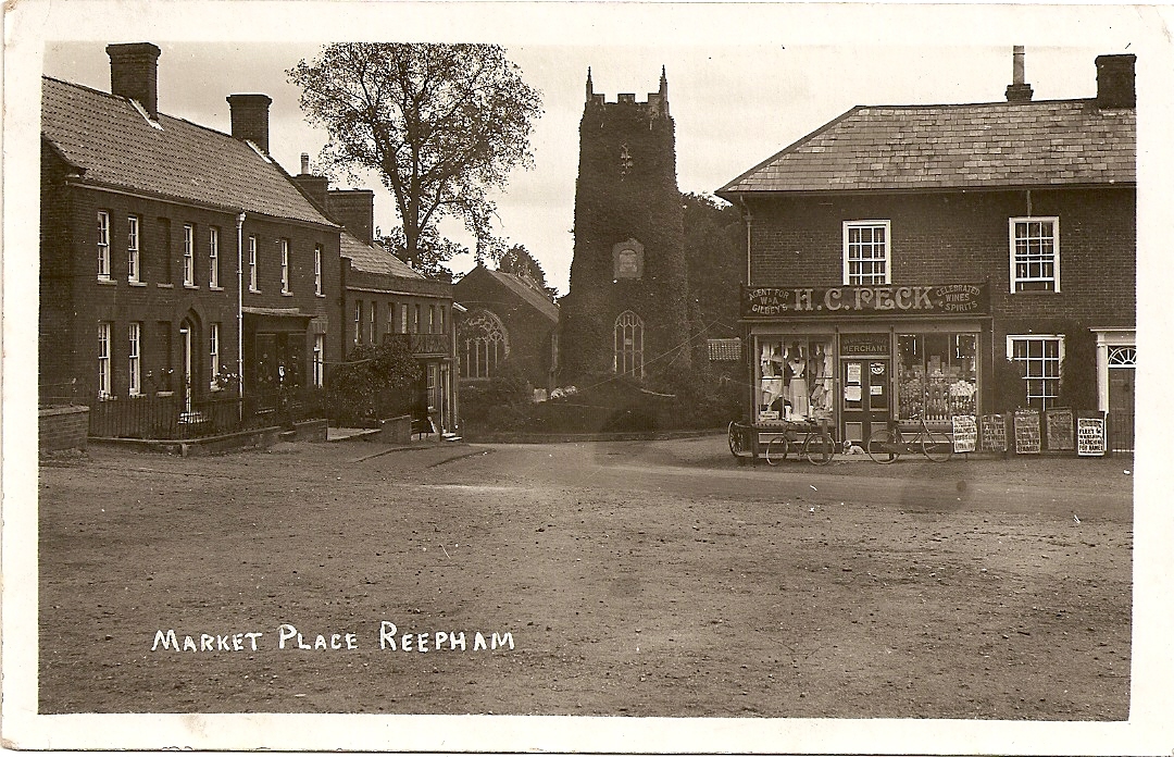 View towards St. Michael's tower including Peck's shop. Newsboards report the disappearance of Gustav Hamel in May 1914. Hamel was a famous pioneering aviator and was flying from Paris to Hendon when his plane disappeared over the Channel after leaving Boulogne.