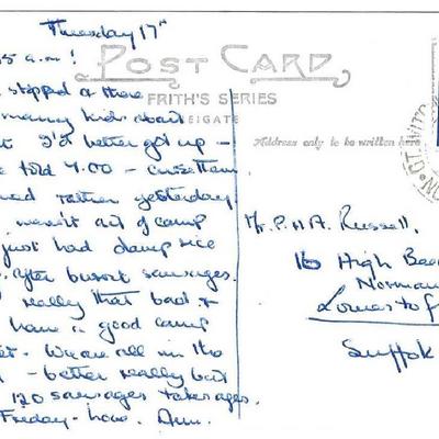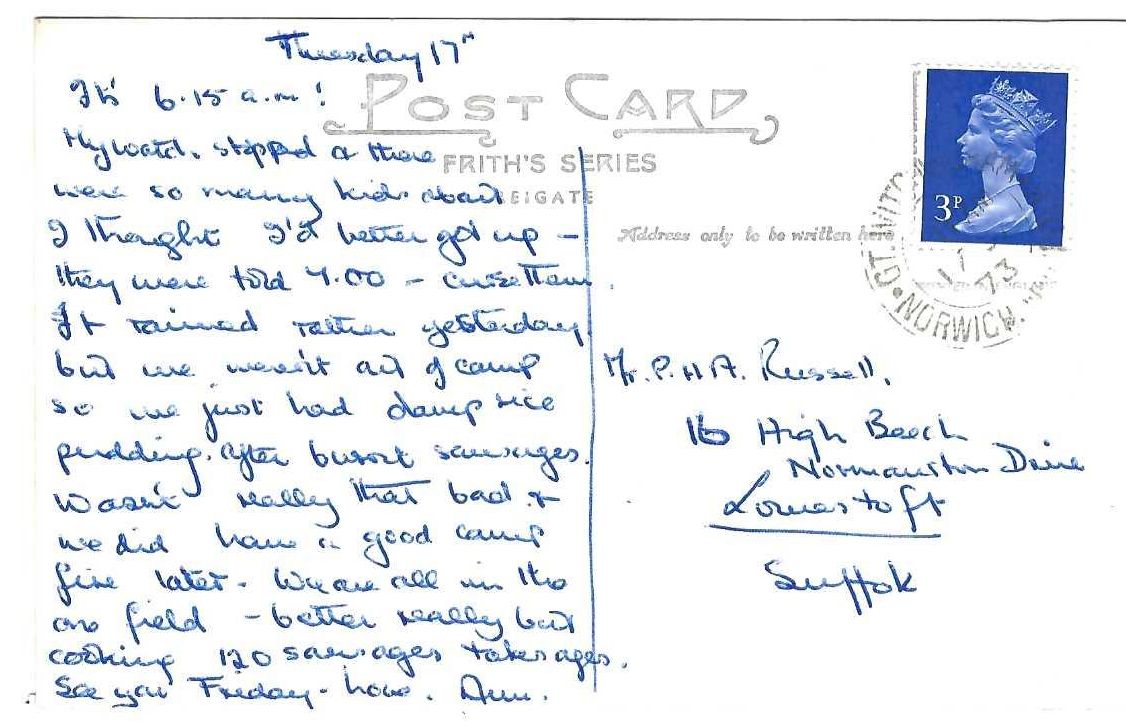 The reverse, written in the 1970s, probably refers to a stay at Whitwell Hall Country Centre, written by a group leader.