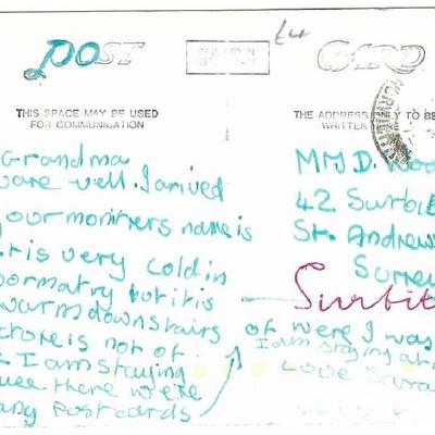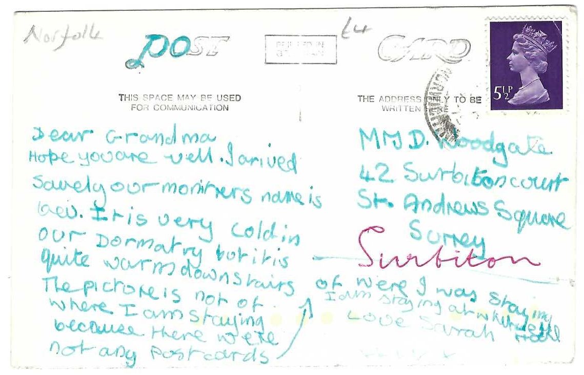 The reverse, written in the 1970s, probably refers to a stay at Whitwell Hall Country Centre.
