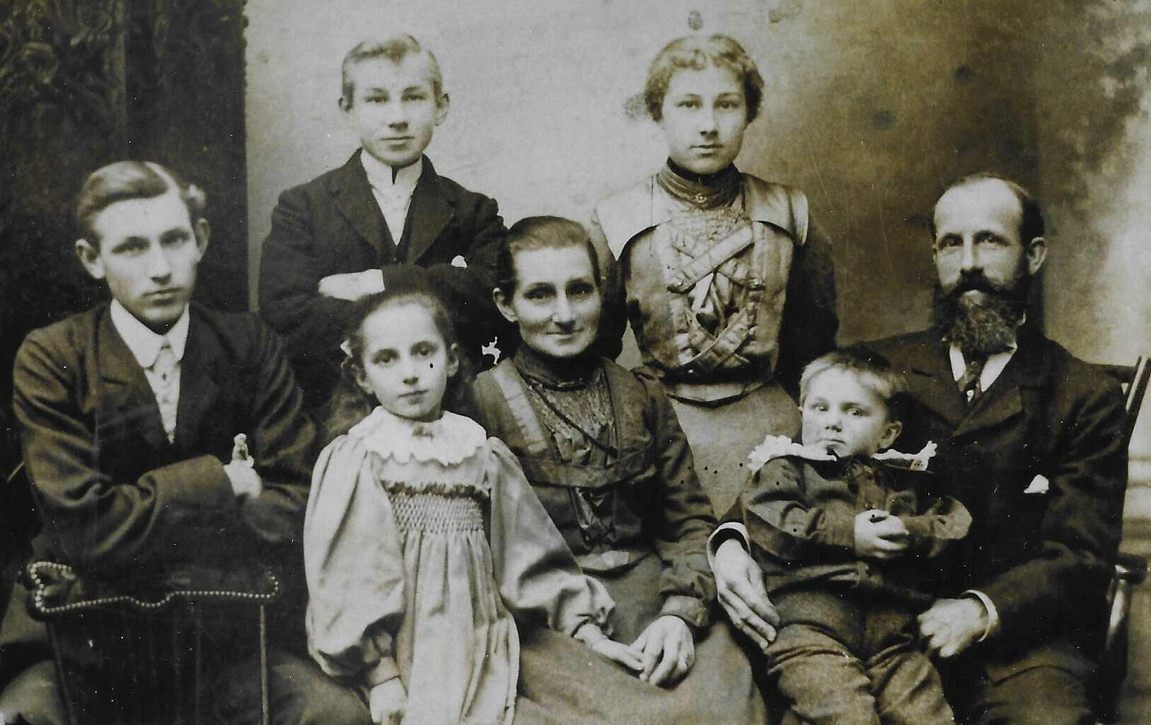 Joshua Blyth (1856-1933) with his wife Rhoda Matilda (nee Timbers). They were married in 1883. The children are Joshua and Rhoda at the back, with Arthur, Charlotte and Percy in the front. Joshua worked as a jobbing gardener for most of his life. The family lived in Heigham.
