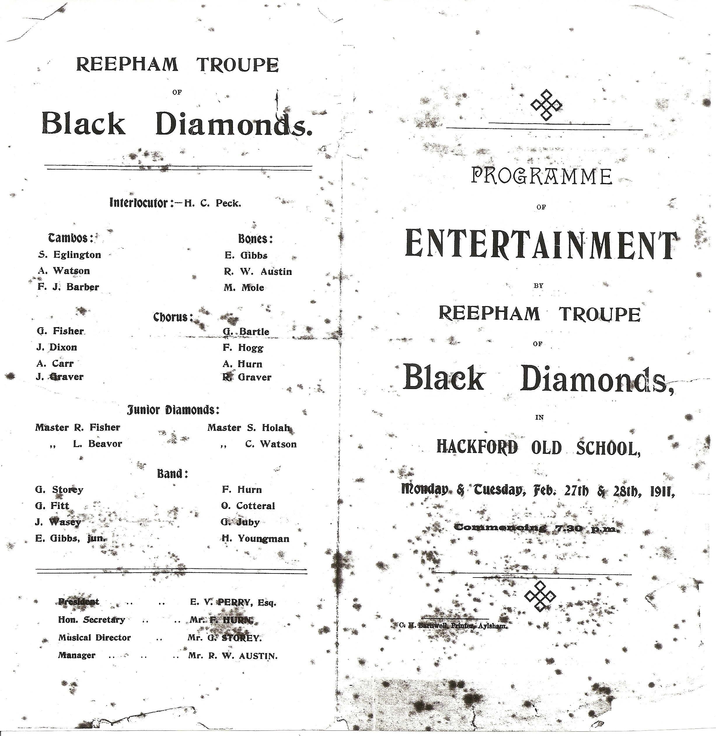 Programme of Entertainment by Reepham Troupe of Black Diamonds