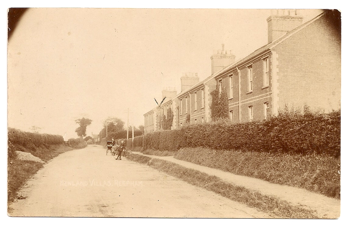 Postcard showing Newland Villas in the 1920s when all the houses stood behind trimmed hedges and before the road was widened.