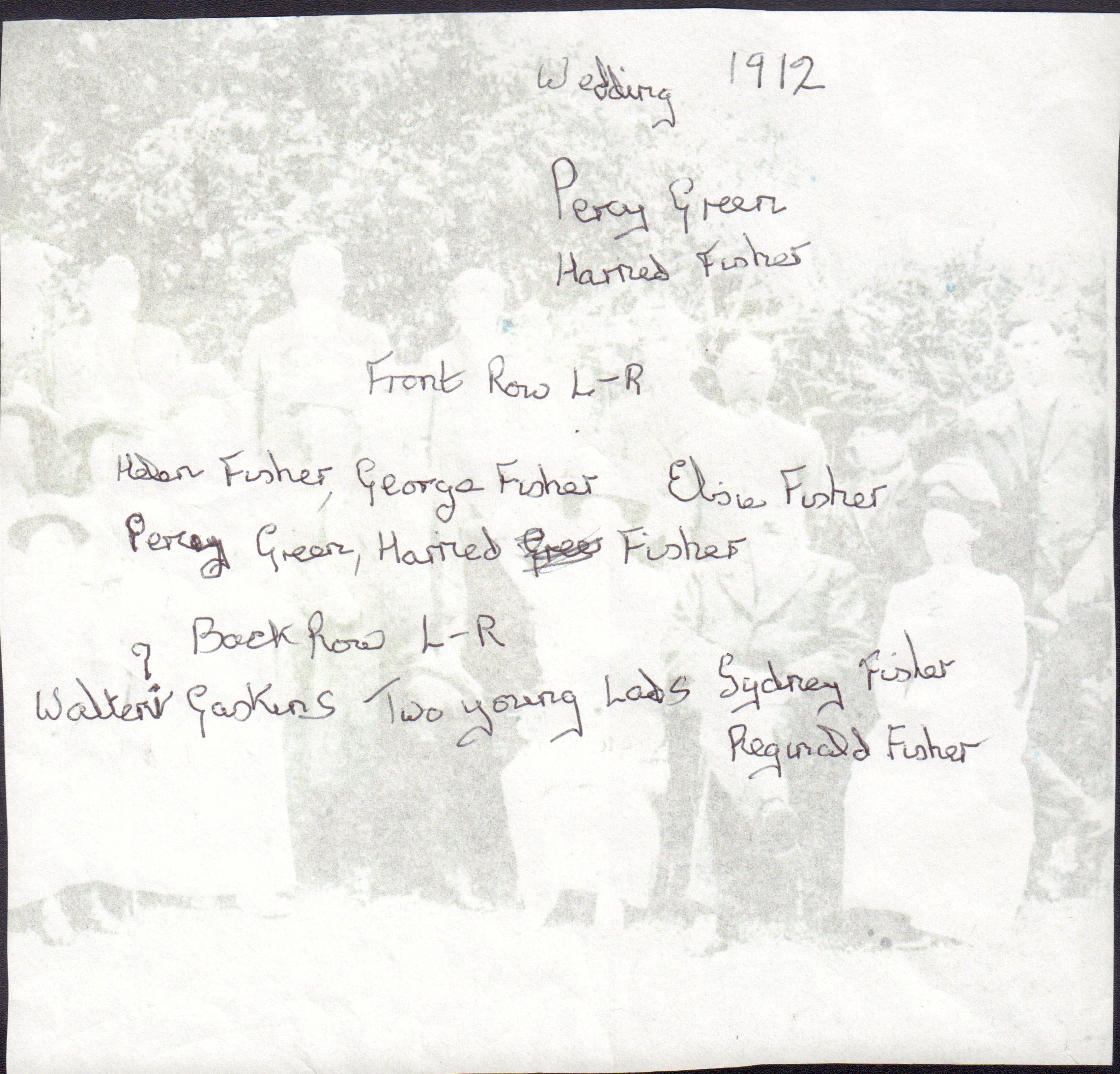 The two young lads in the back row are the bride's brothers Reginald Fisher and Stanley Fisher.