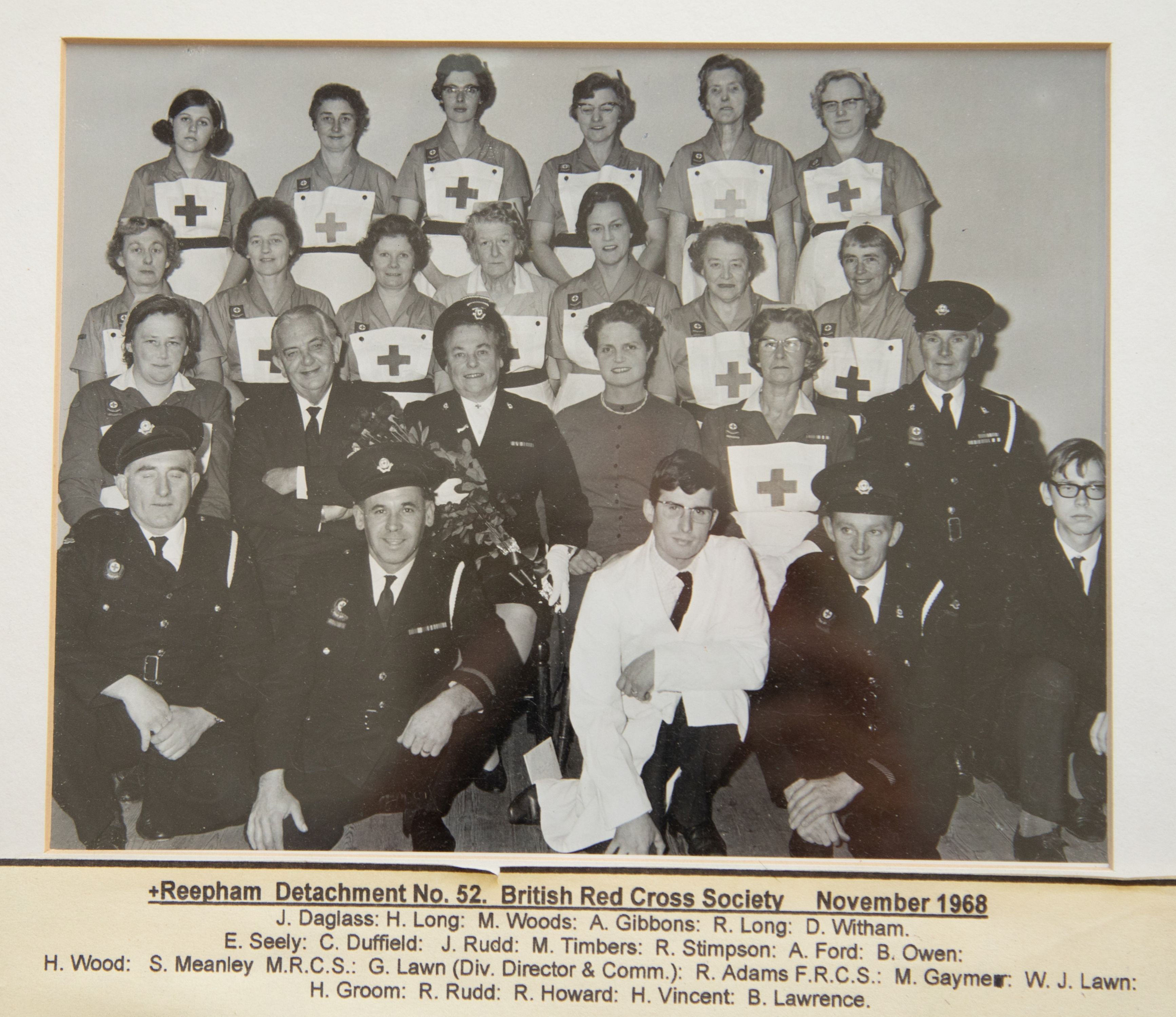 Group photograph of Reepham Detachment No 52, British Red Cross Society taken in November 1968.
